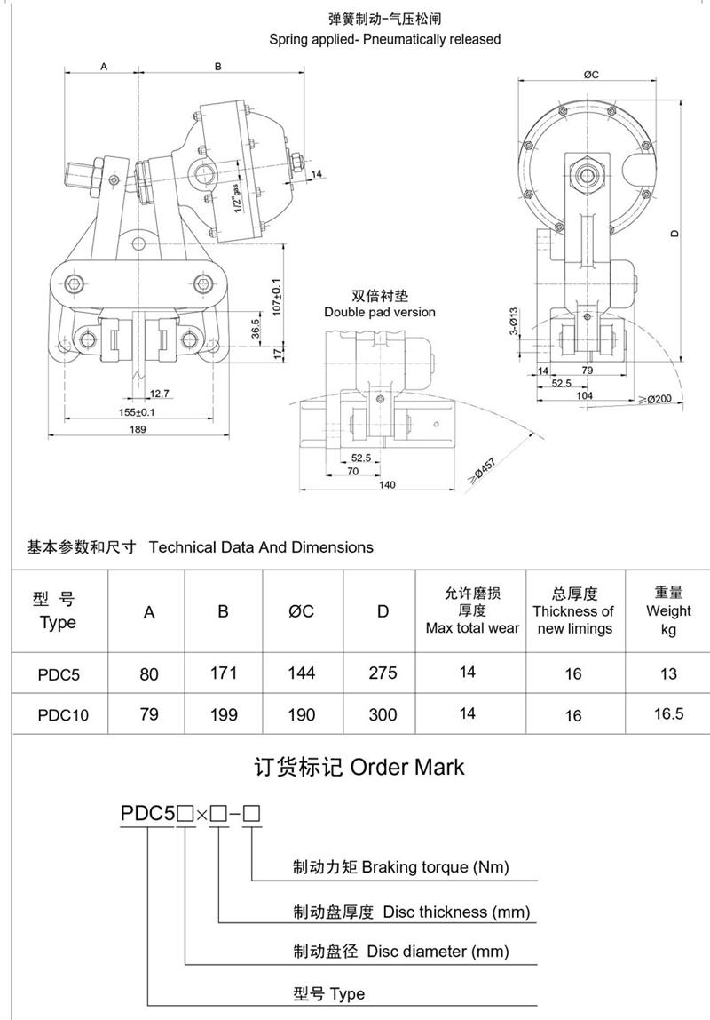 ■有常閉式設計:彈簧制動(dòng),氣動(dòng)釋放(開(kāi)閘);有常開(kāi)式設計:由氣壓制動(dòng),彈簧釋放,制動(dòng)力可隨氣壓的改變而變化,使用時(shí)可根據需要靈活改變。